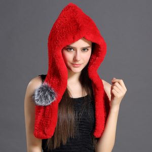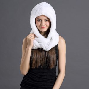 Women’s Bomber Real Fur Hats Infinity Scarf with Hood