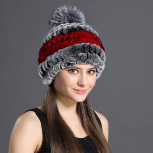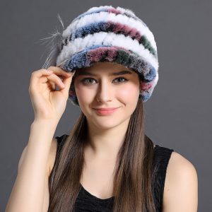Russian Real Fur Beanie Hat Striped Caps in Multicolor